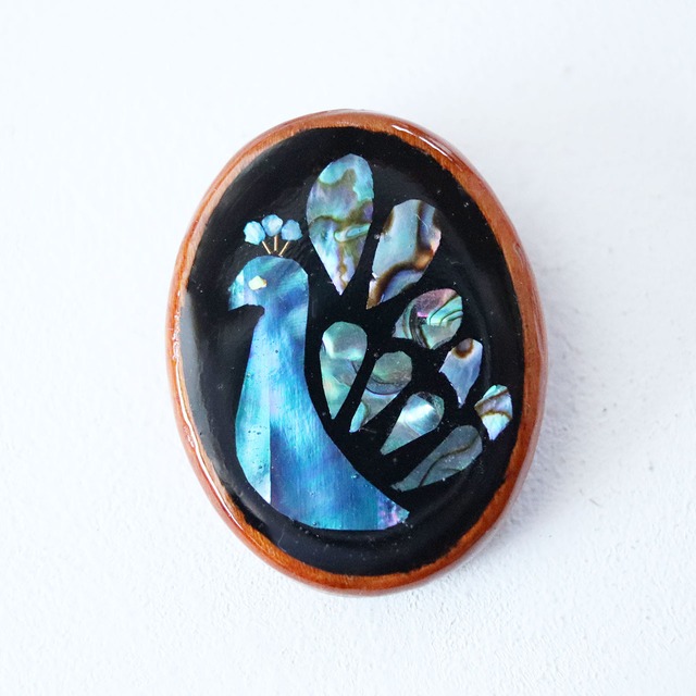 天弓のしずく 螺鈿風 木枠ブローチ 孔雀
