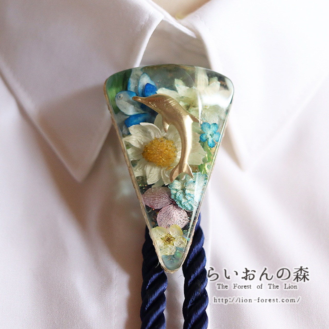 お花の海のループタイ(イルカ・ゴールド)