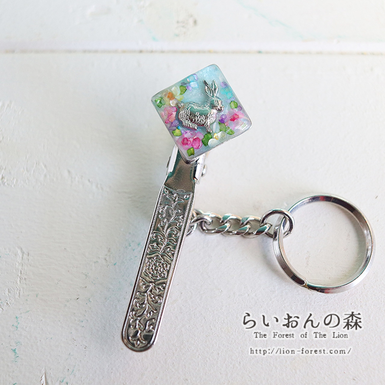森の花畑キークリップ(ウサギ・ひし形・シルバー)