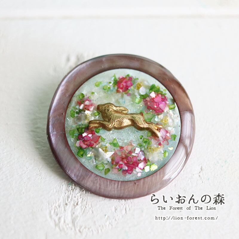 森の花畑シェルサークルブローチ(ウサギ・赤)