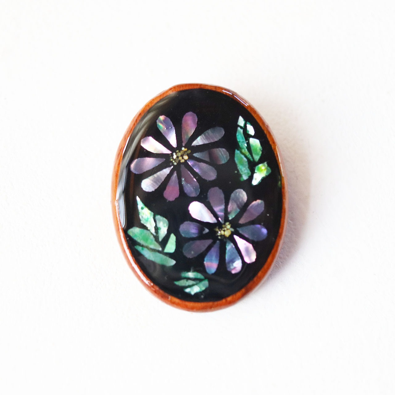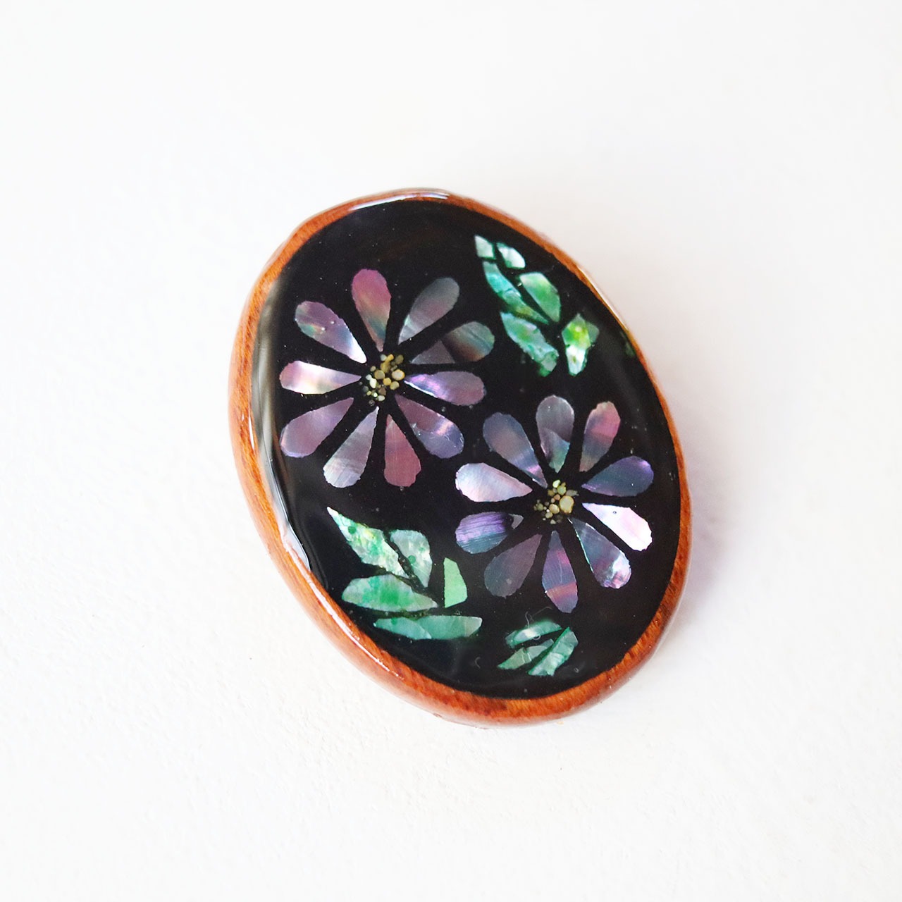花だより 秋の花 螺鈿風木枠ブローチ(野菊)