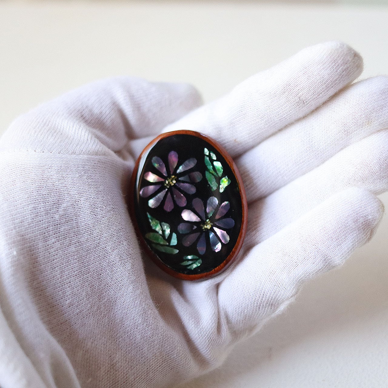 貝で描かれたお花は、光を集めてやさしくキラキラと輝きます。