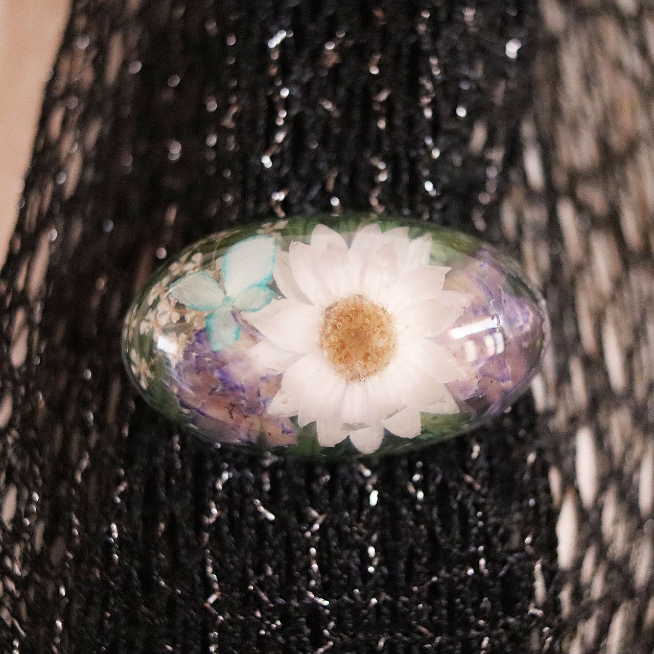 【ramillete 小さな花束】花かんざしと八重ウツギのブローチ(楕円型)
