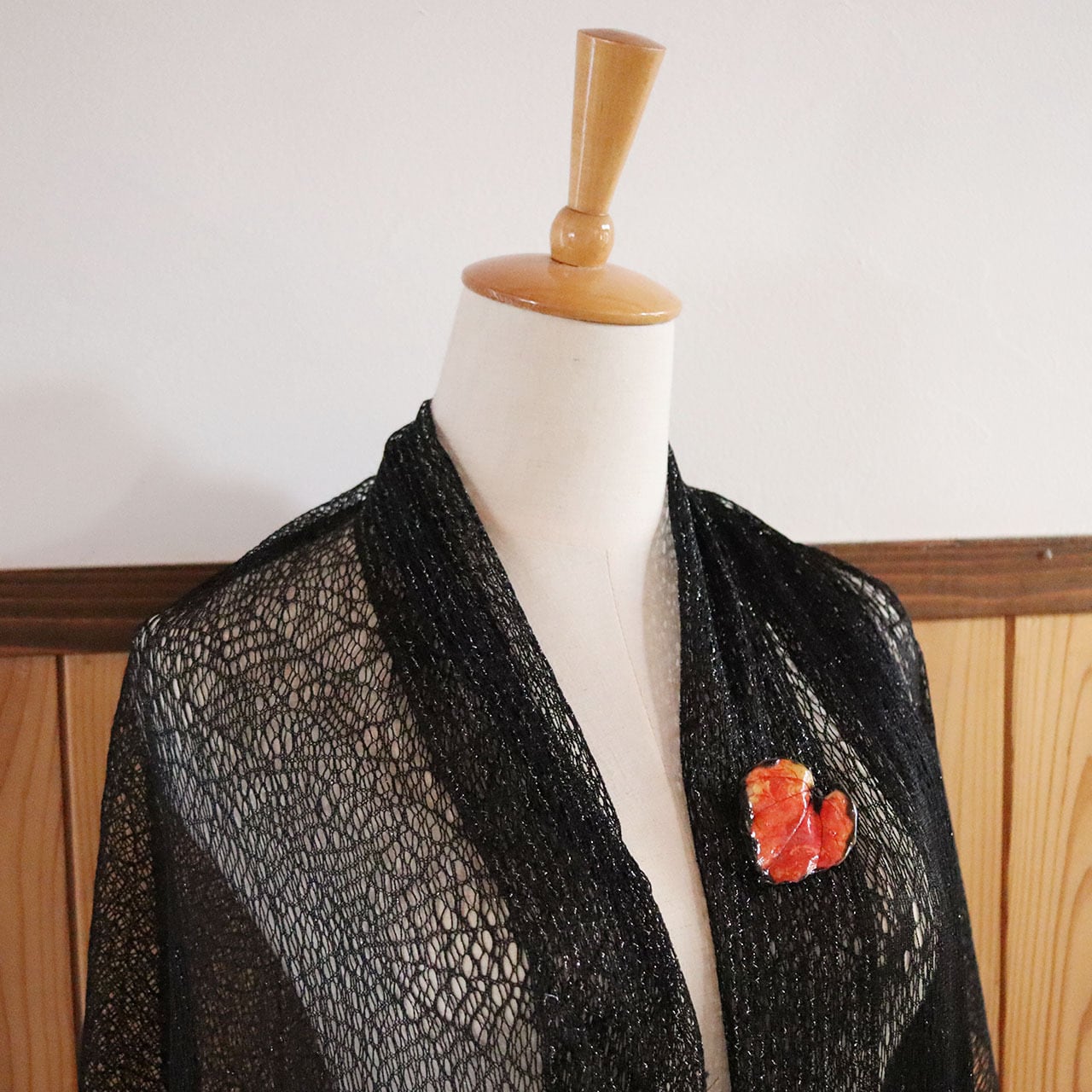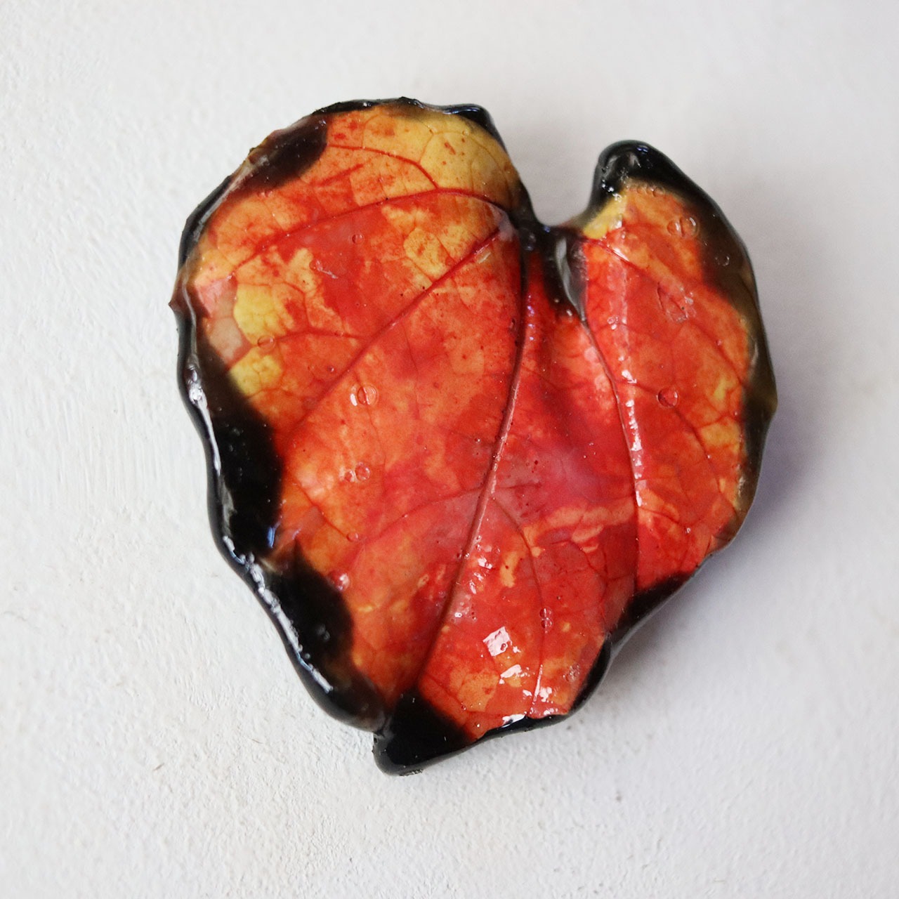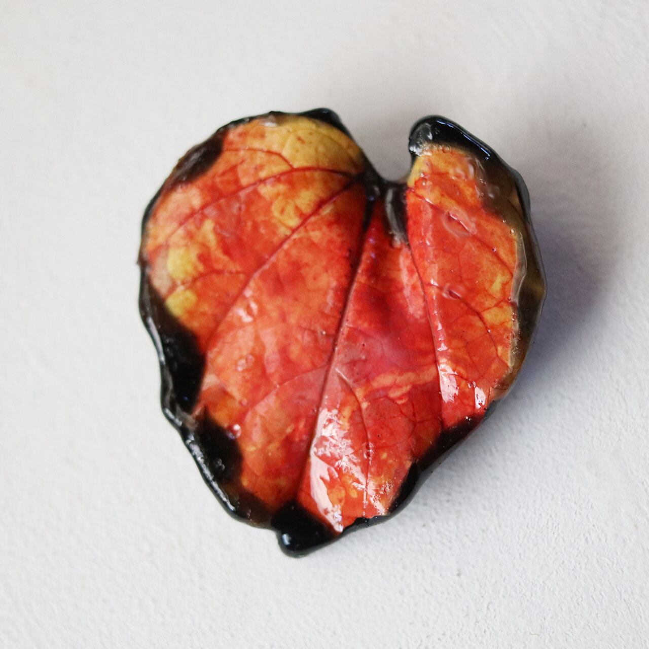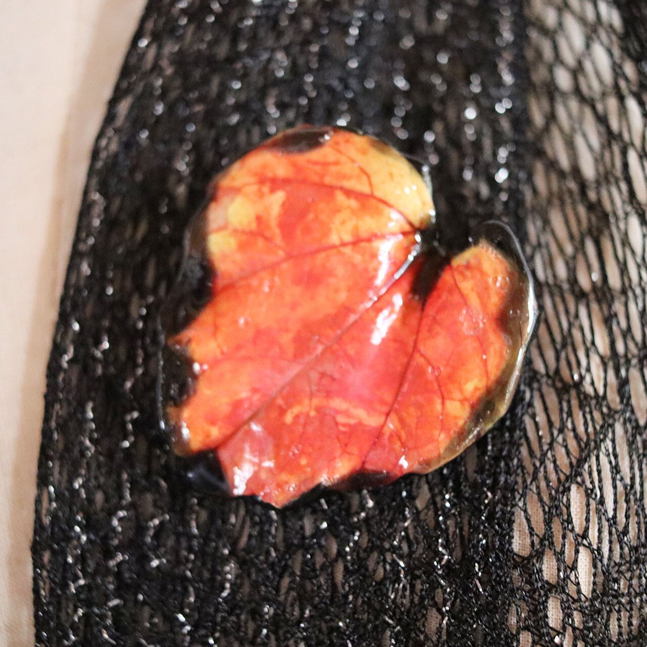 森の恵みブローチ 落ち葉(ツタ・緋色-ひいろ)