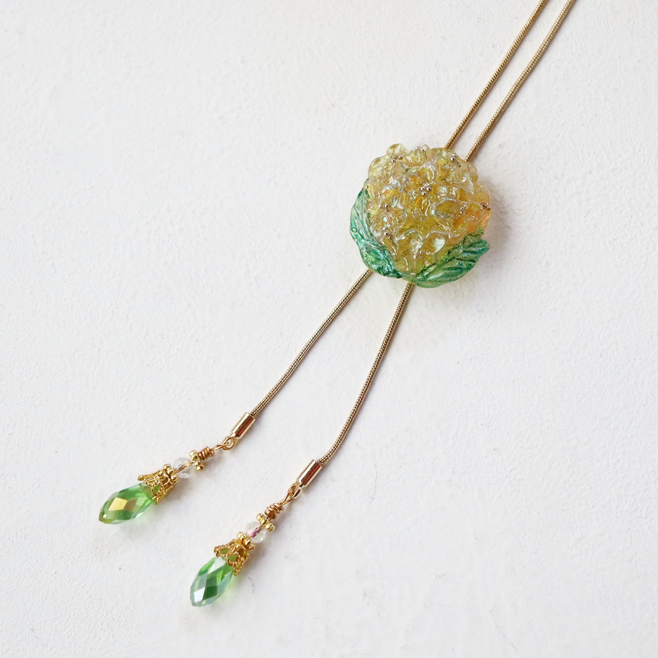 木犀花のループタイ ネックレス・ラリエット風(銀木犀×草色)