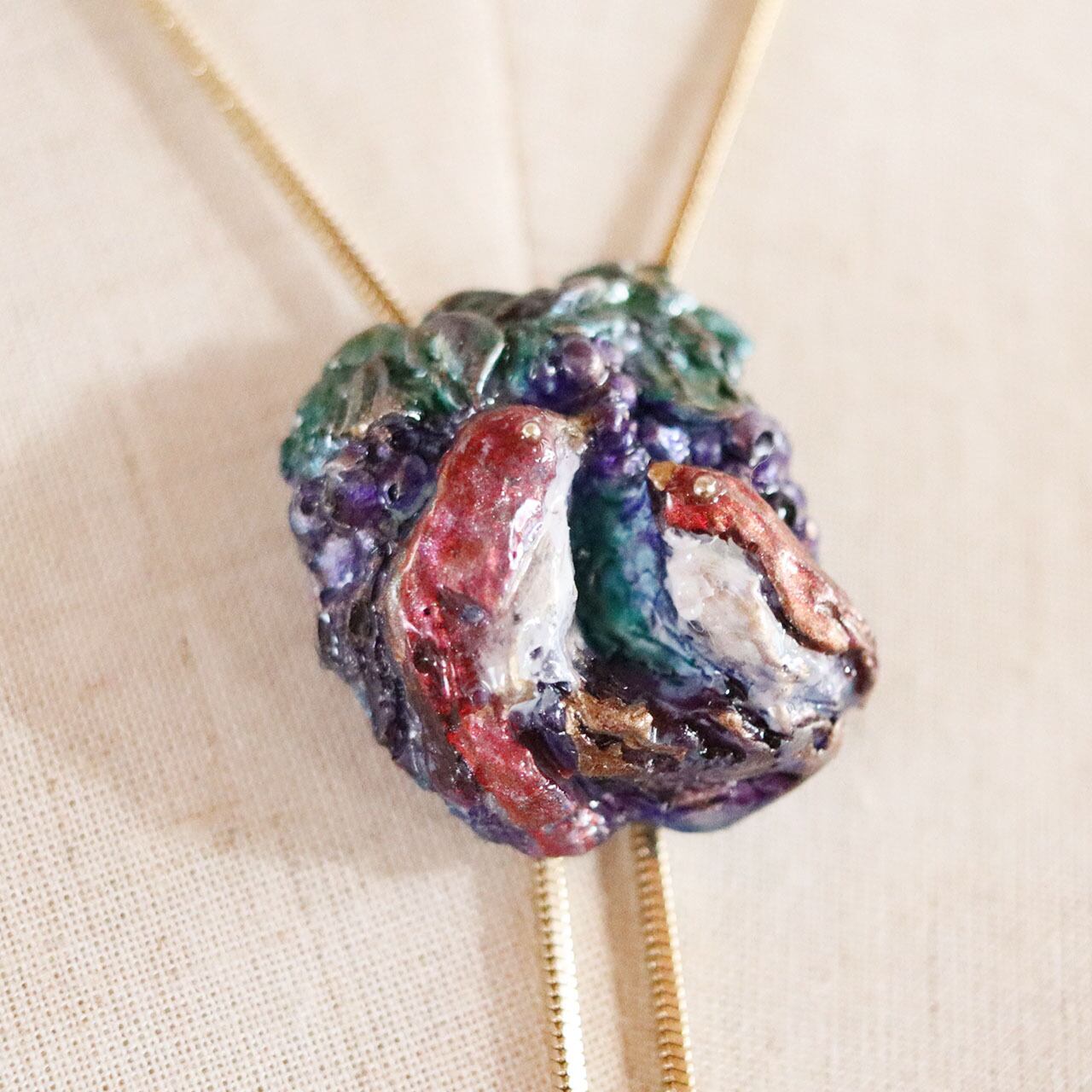 森の恵みループタイ -山葡萄と小鳥- ネックレス・ラリエット風(茜色)
