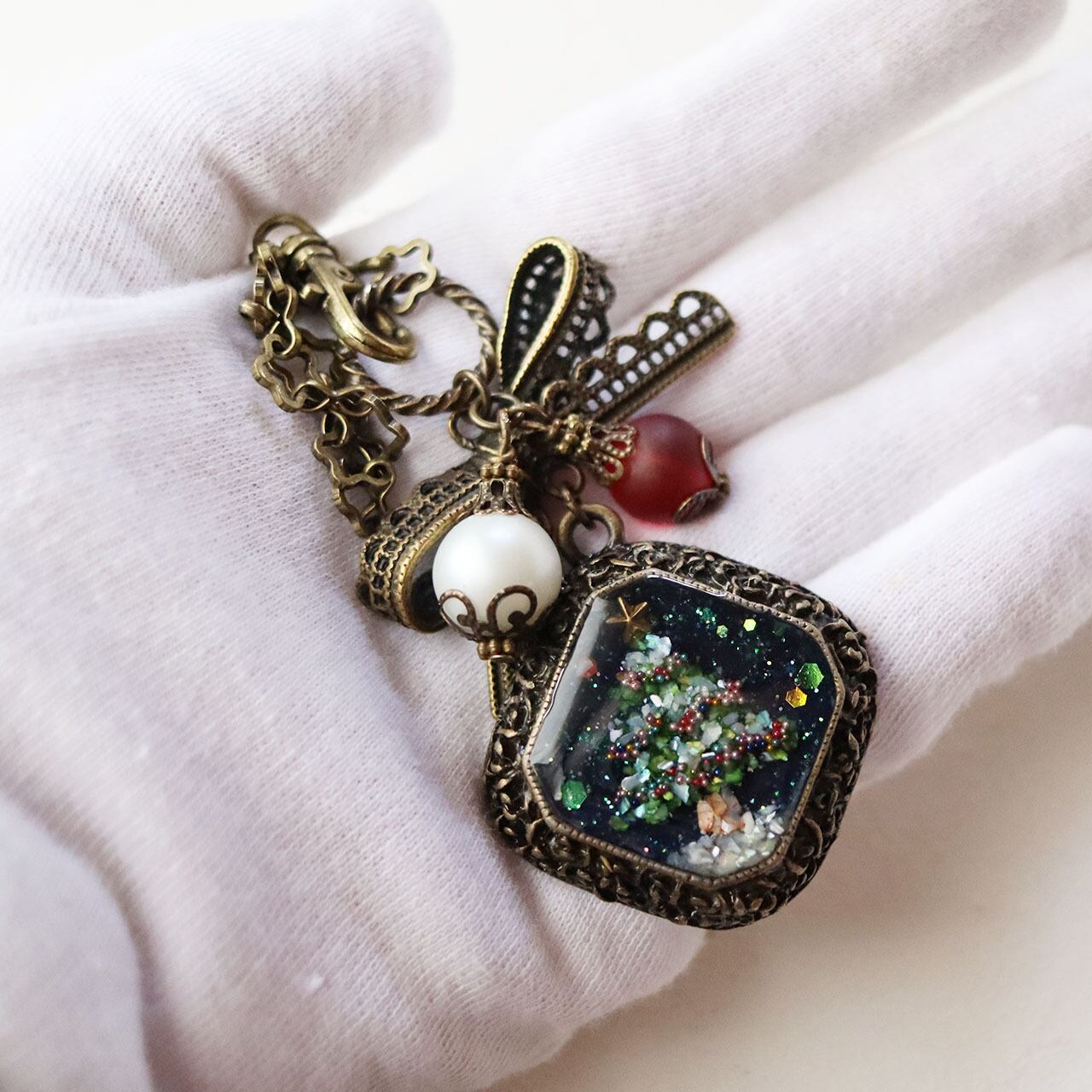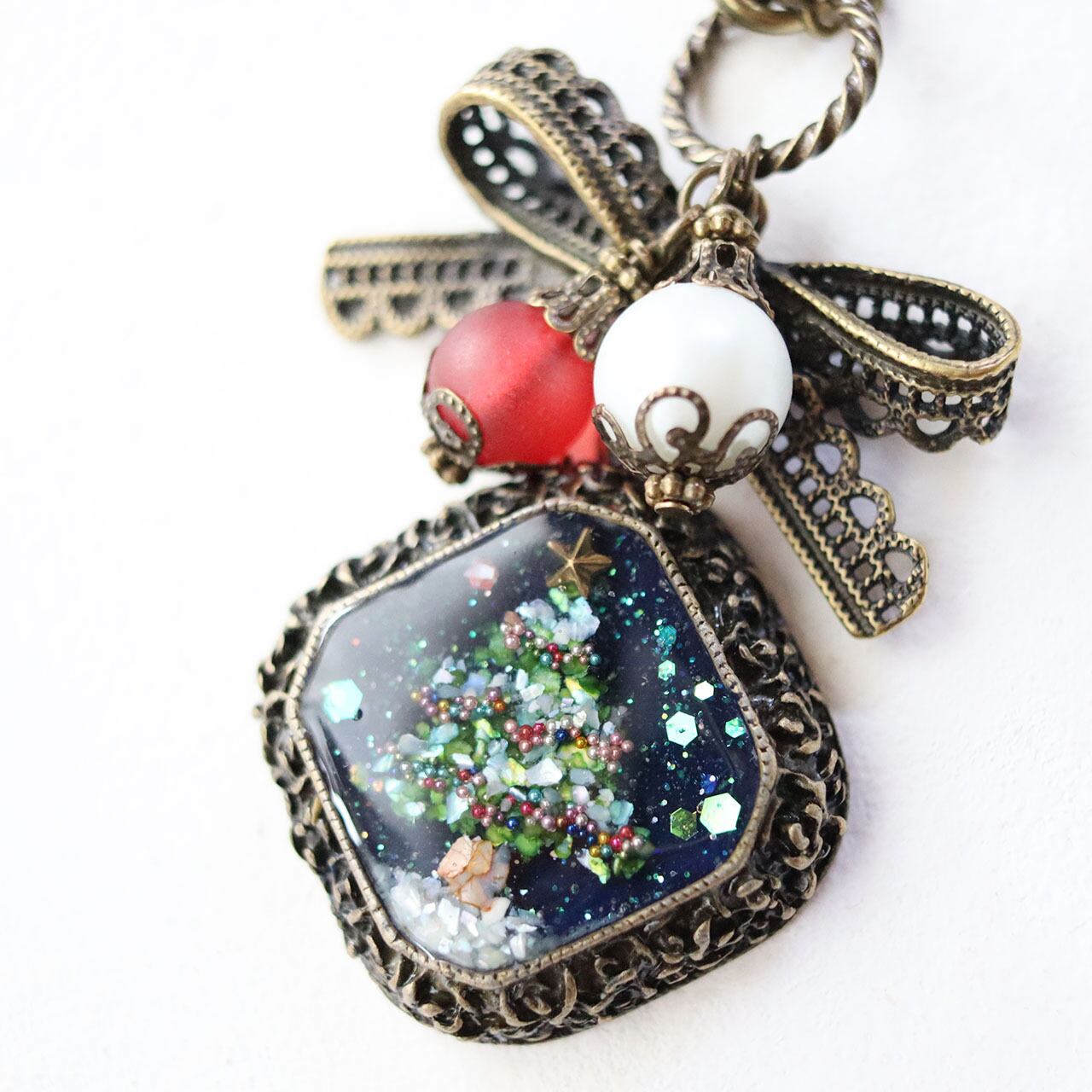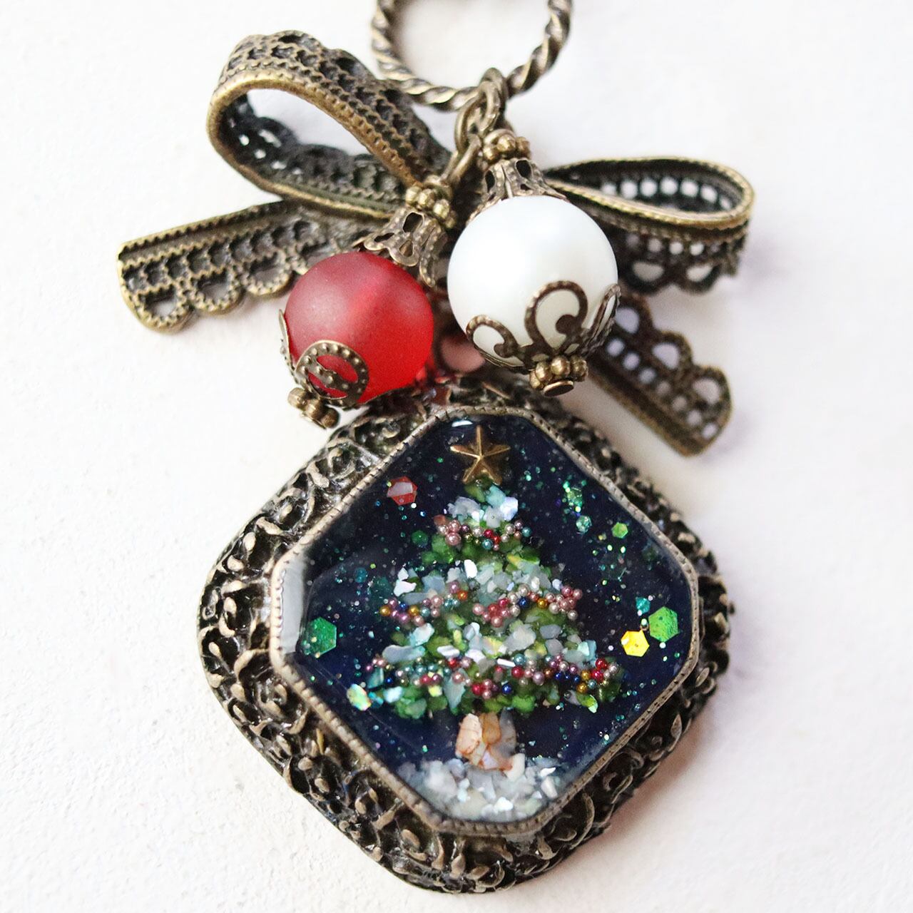 ツリーのオーナメント風のビーズ飾りもポイントです。