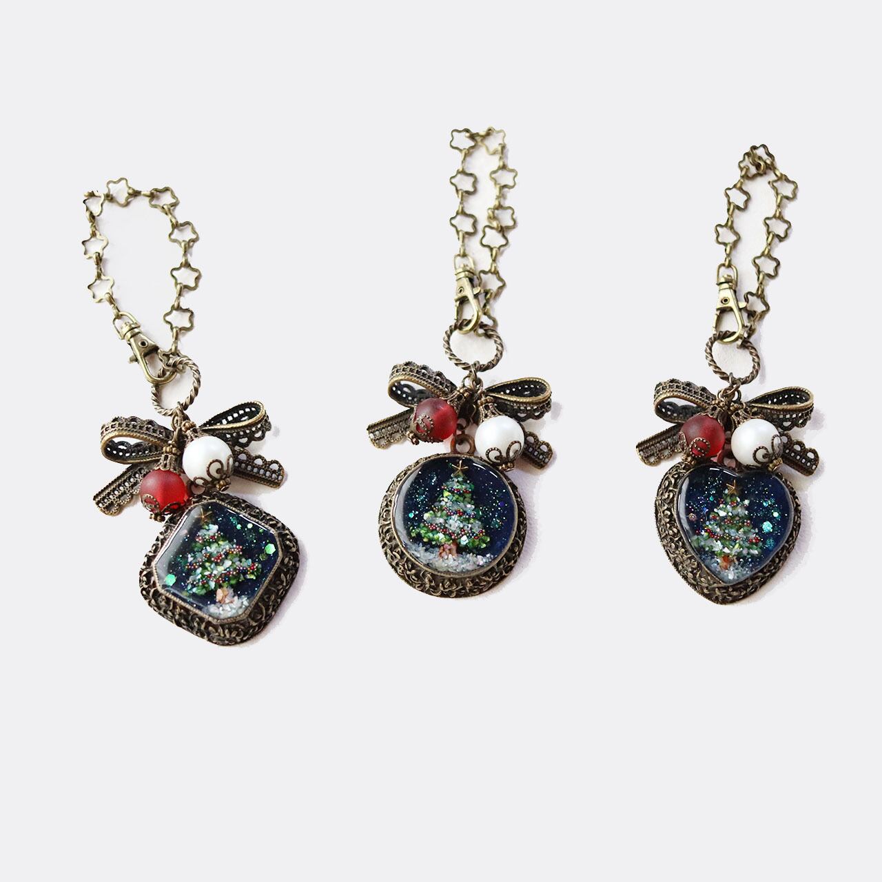 森のクリスマス 小さなツリーバッグチャーム ひし形