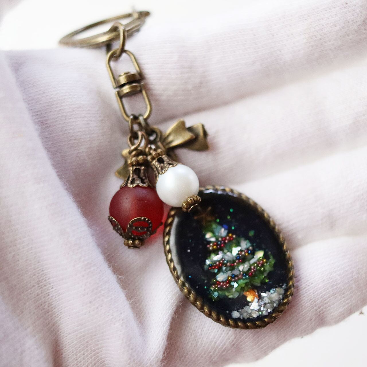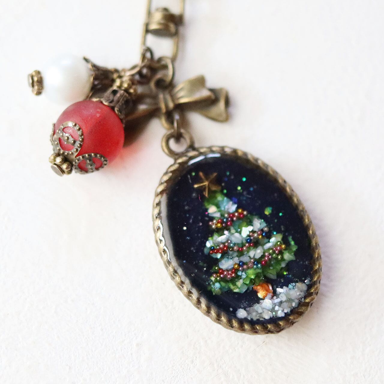 ツリーのオーナメント風のビーズ飾りもポイントです。
