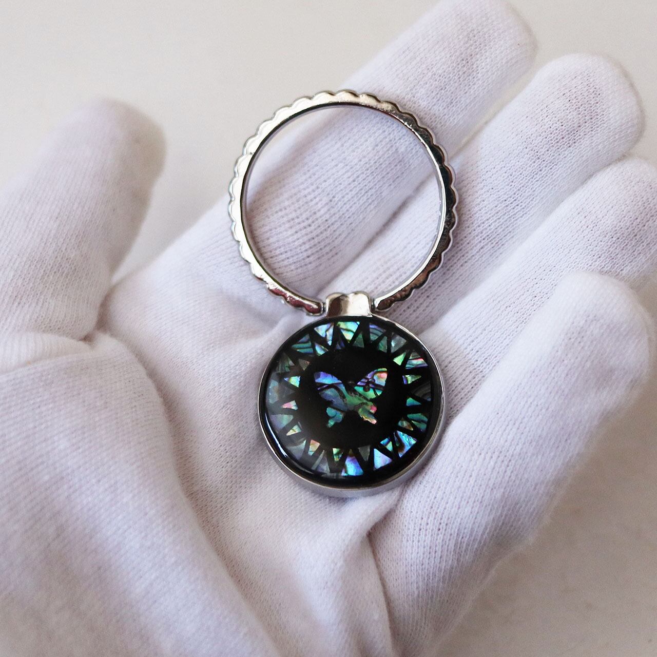 天弓のしずく 螺鈿風モザイク スマホリング 空の魔法陣 シルバー