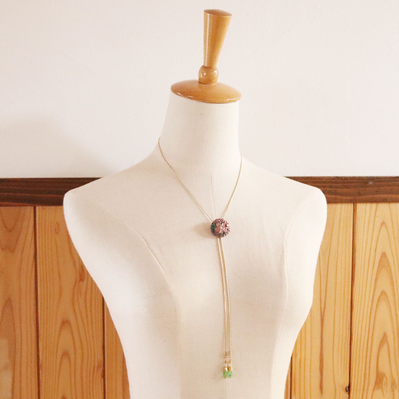 桜花のループタイ ネックレス・ラリエット風(今様色×若草色)