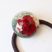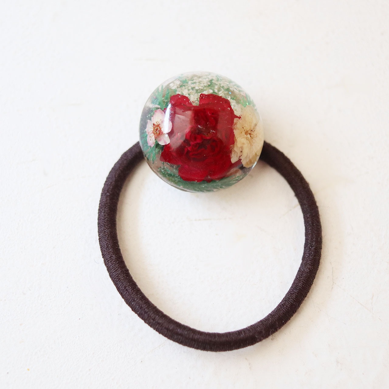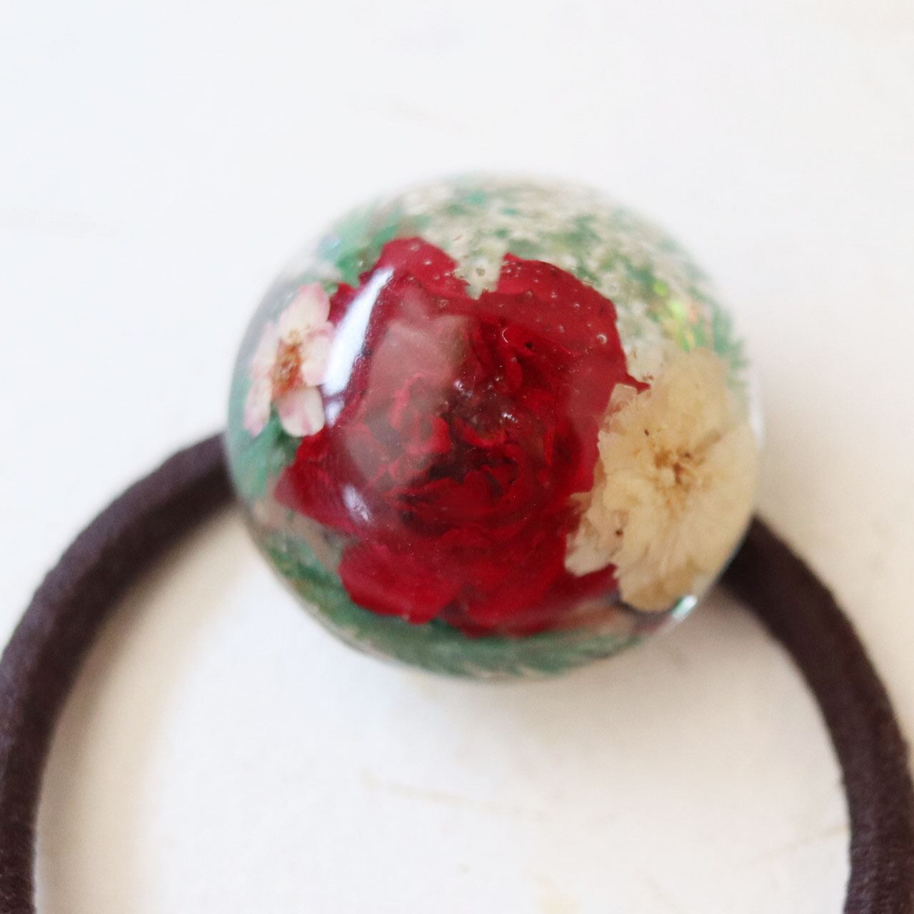 【ramillete 小さな花束】赤バラとコデマリのヘアゴム(丸型)